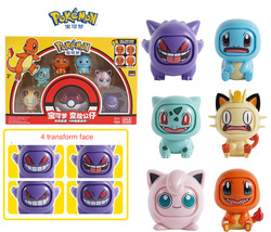 6pcs/set 2 Styles Pocket Monsters Ball Figure Poke-ball 4 Face-changing Toy Face Change Eevee Pika Poke Mon Go Variant Pvc Toy