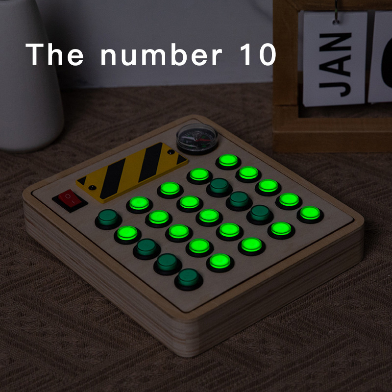 Montessori Green Buttons Electronic Busy Board Toddler Toys Wooden Sensory Game with LED Lights Educational Fidget Toys for Kids
