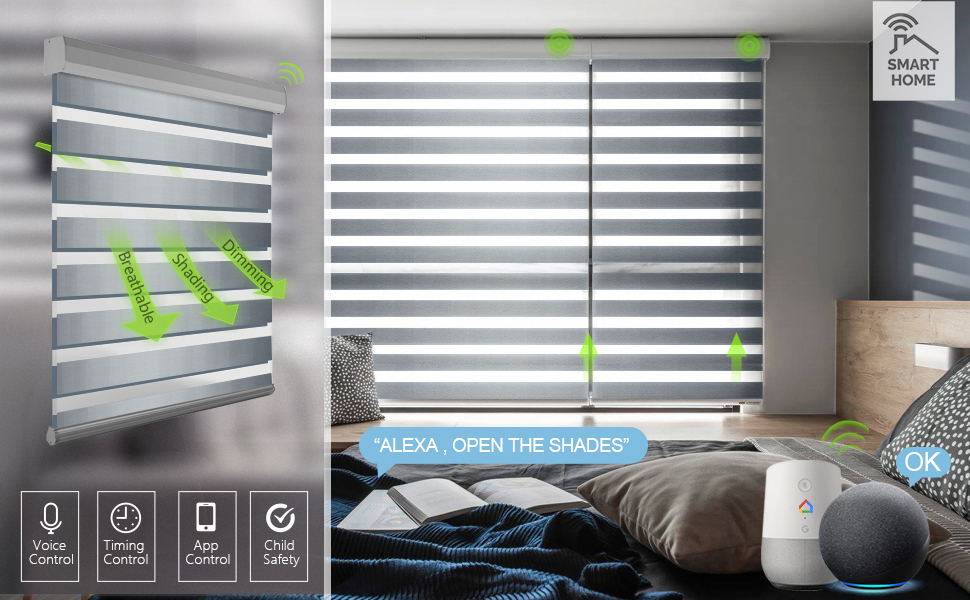 100% Fabric Blackout Electric Roller Blinds Smart Blinds Shutter Shades Automatic Window Home Decor